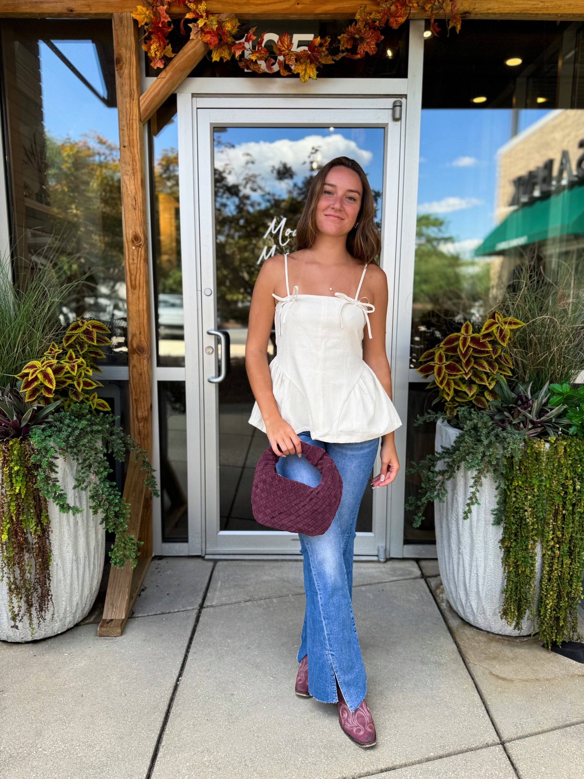 Bow Trim Peplum Top