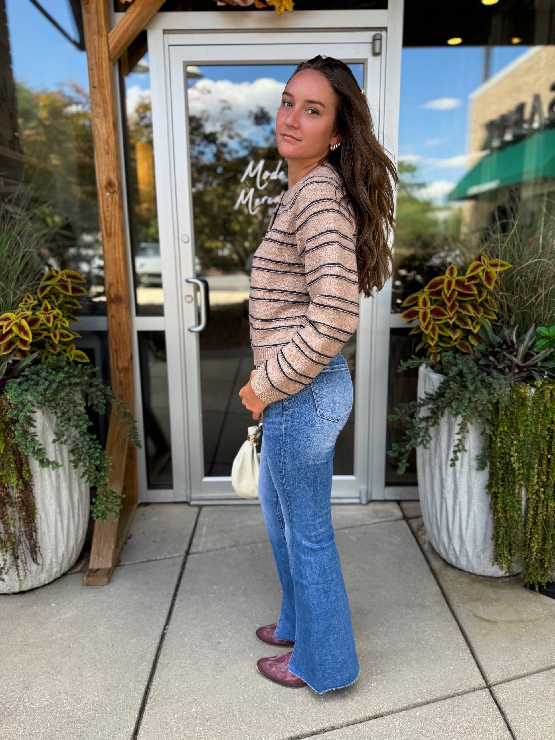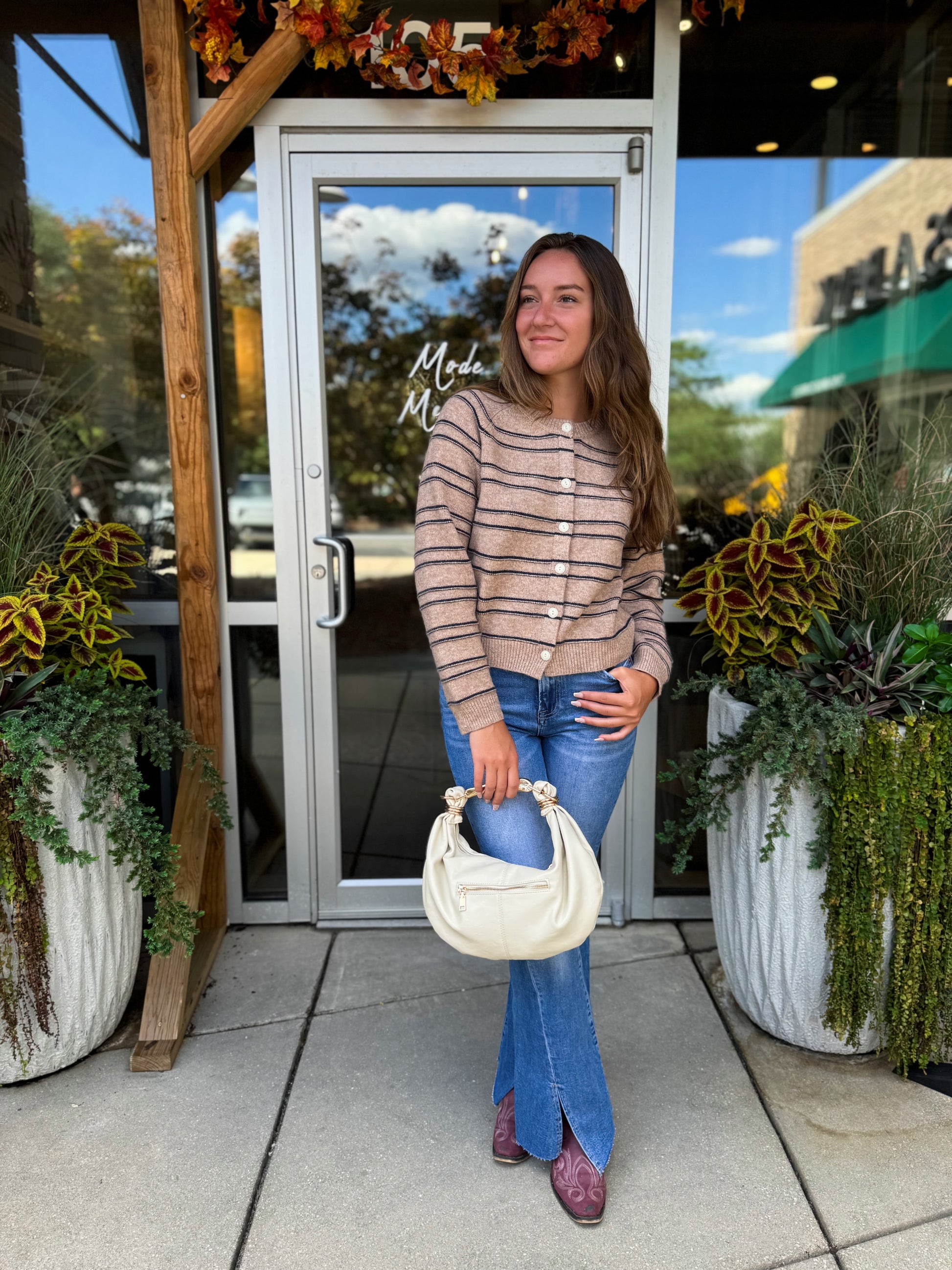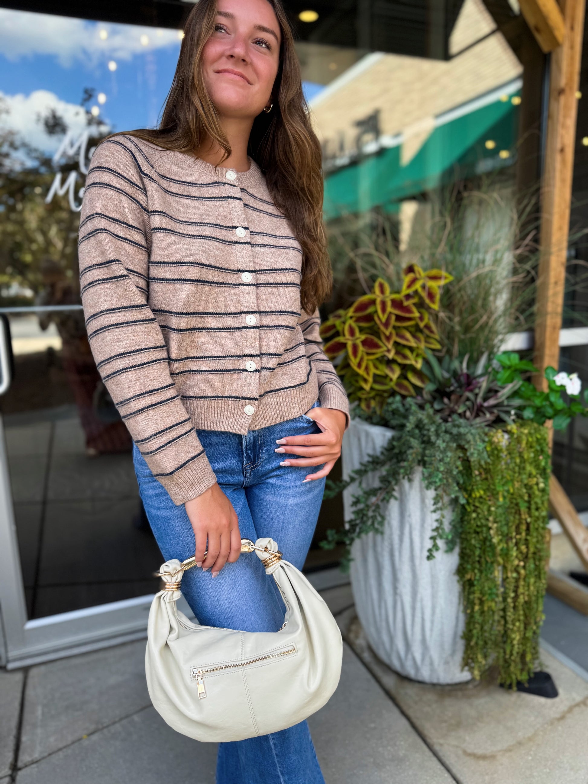 Camel Striped Cardigan