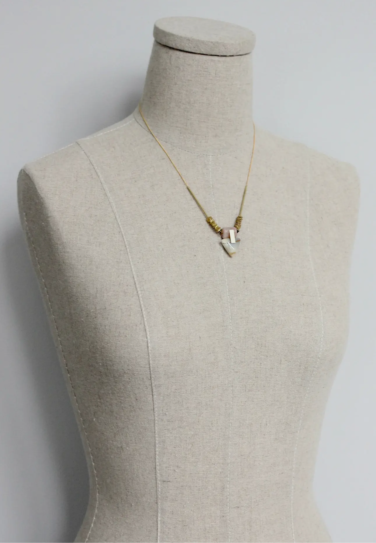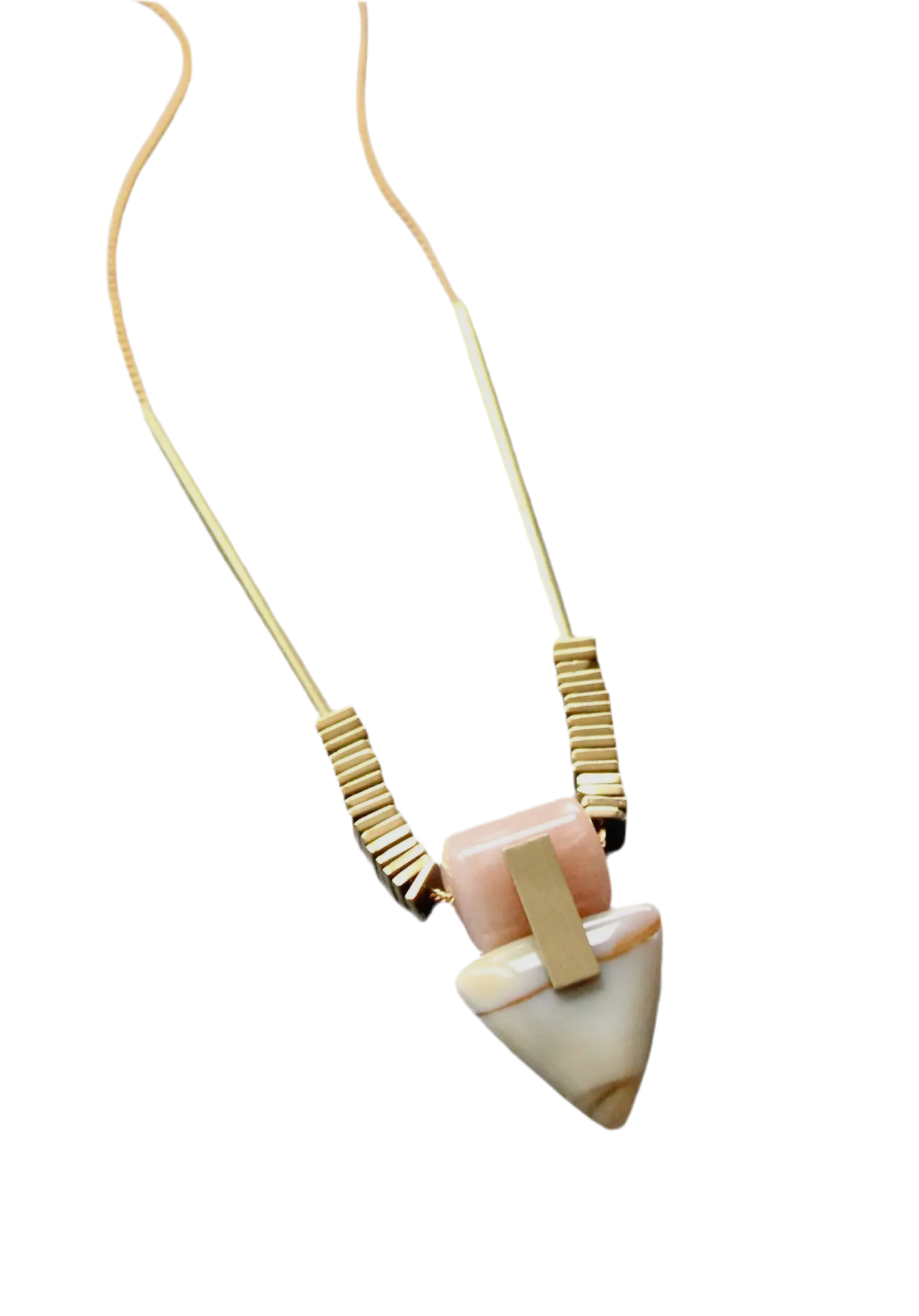 18" necklace with gold color plated chain, gold plated hematite, peach moonstone, and agate. 1 inch extender.